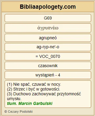 | L07 | Mk13_33 | Uważajcie G991 , czuwajcie G69 , bo nie wiecie G1492 , kiedy G4219 czas G2540 ten nadejdzie G2076 . |