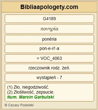 | L07 | Mk7_22 | cudzołóstwa G3430 , chciwość G4124 , przewrotność G4189 , podstęp G1388 , wyuzdanie G766 , zazdrość G3788 G4190 , obelgi G988 , pycha G5243 , głupota G877 . |