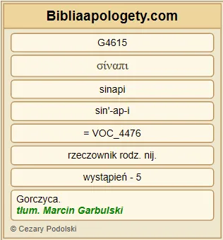 | L07 | Mt13_31 | Inną przypowieść G3850 im przedłożył G3908 : Królestwo G932 niebieskie G3772 podobne jest do ziarnka gorczycy G4615 , które ktoś wziął G2983 i posiał G4687 na swej roli G68 . |