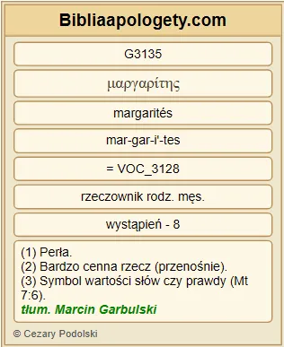 | L07 | Mt13_45 | Dalej, podobne jest królestwo G932 niebieskie G3772 do kupca G1713 , poszukującego G2212 pięknych G2570 pereł G3135 . |