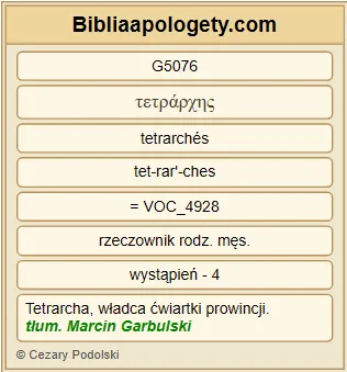 | L07 | Mt14_1 | W owym czasie doszła do uszu G189 tetrarchy G5076 Heroda G2264 wieść o Jezusie G2424 . |