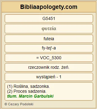 | L07 | Mt15_13 | On zaś odrzekł G611 : Każda roślina G5451 , której nie sadził G5452 mój Ojciec G3962 niebieski G3770 , będzie wyrwana G1610 . |
