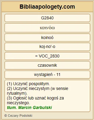 | L07 | Mt15_18 | Lecz to, co z ust G4750 wychodzi G1607 , pochodzi G1831 z serca G2588 , i to czyni człowieka G444 nieczystym G2840 . |