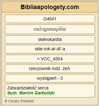 | L07 | Mt19_8 | Odpowiedział im G3004 : Przez wzgląd na zatwardziałość G4641 serc waszych G5216 pozwolił wam G2010 Mojżesz G3475 oddalać G630 wasze żony G1135 \ lecz od początku G746 tak nie było G3756 . |