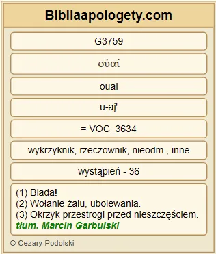 | L07 | Mt26_24 | Wprawdzie Syn G5207 Człowieczy G444 odchodzi G5217 , jak G2531 o Nim G846 jest napisane G1125 , lecz G1161 biada G3759 temu G1565 człowiekowi G444 , przez G1223 którego G3739 Syn G5207 Człowieczy G444 będzie wydany G3860 . Byłoby G2258 lepiej G2570 dla tego G1565 człowieka G444 , gdyby się nie G3756 narodził G1080 . |