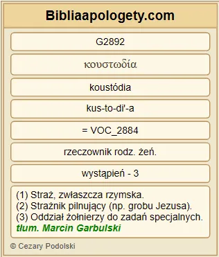 | L07 | Mt27_65 | Rzekł G5346 im Piłat G4091 : Macie G2192 straż G2892 : idźcie G5217 , zabezpieczcie G805 grób, jak umiecie G1492 . |