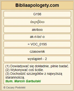 | L07 | Mt2_7 | Wtedy Herod G2264 przywołał G2564 potajemnie G2977 Mędrców G3097 i wypytał ich G198 dokładnie o czas G5550 ukazania się G5316 gwiazdy G792 . |