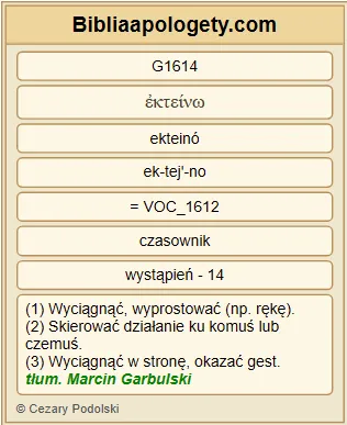 | L07 | Mt8_3 | [Jezus] wyciągnął G1614 rękę G5495 , dotknął G680 go G846 i rzekł G3004 : Chcę G2309 , bądź oczyszczony G2511 ! I natychmiast G2112 został oczyszczony G2511 z trądu G3014 . |