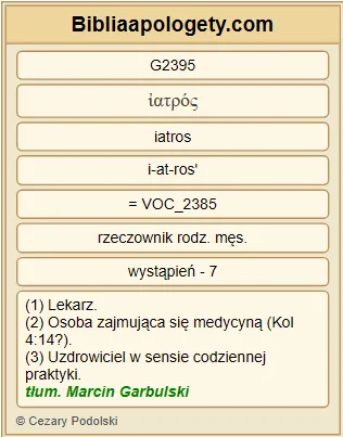 | L07 | Mt9_12 | On, usłyszawszy to G191 , rzekł G2036 : Nie potrzebują lekarza G2395 zdrowi G2480 , lecz ci, którzy się źle mają G2560 . |
