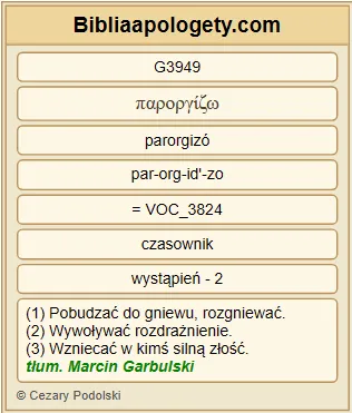 | L07 | Rz10_19 | Pytam dalej: czyż Izrael G2474 nie zrozumiał G1097 ? Mojżesz G3475 mówi G3004 : Wzbudzę w was zawiść G3863 do tego, który nie jest ludem G1484 , wzniecę w was gniew G3949 do ludu G1484 nierozumnego G801 . |