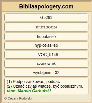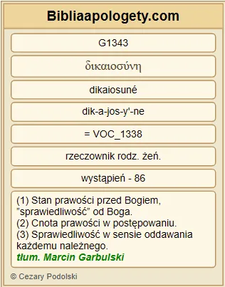 | L07 | Rz10_3 | Albowiem nie chcąc uznać, że usprawiedliwienie G1343 pochodzi od Boga G2316 , i uporczywie trzymając się własnej drogi usprawiedliwienia G1343 , nie poddali się G5293 usprawiedliwieniu G1343 pochodzącemu od Boga G2316 . |