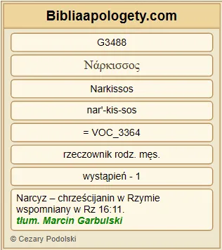 | L06 | Rz16_11 | Pozdrówcie Herodiona, mego rodaka. Pozdrówcie tych z domu Narcyza, którzy należą do Pana. | |||||||||||||