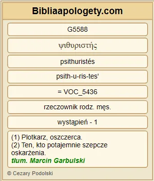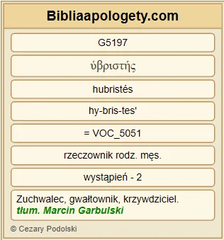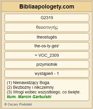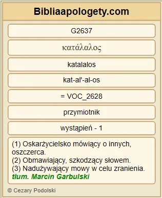 | L07 | Rz1_30 | potwarcy G5588 , oszczercy G2637 , nienawidzący Boga G2319 , zuchwali G5197 , pyszni G5244 , chełpliwi G213 , w tym, co złe G2556 – pomysłowi G2182 , rodzicom G1118 nieposłuszni G545 , |