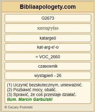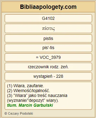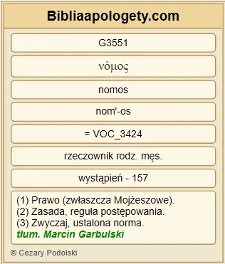 | L07 | Rz3_31 | Czy więc G3767 przez wiarę G4102 obalamy G2673 Prawo G3551 ? Żadną miarą G3361 G1096 ! Przeciwnie G235 , Prawo G3551 właściwie ustawiamy G2476 . |