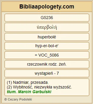 | L07 | Rz7_13 | A więc G3767 to G3588 co dobre G18 stało się G1096 dla mnie G1698 przyczyną G1096 śmierci G2288 żadną miarą G3361 G1096 ale G235 to właśnie G3588 grzech G266 by G2443 okazać G5316 się grzechem G266 przez to G1223 co dobre G18 sprowadził G2716 na mnie G1698 śmierć G2288 aby G2443 przez związek G1223 z przykazaniem G1785 grzech G266 ujawnił G1096 nadmierną G2596 G5236 swą grzeszność G268 |