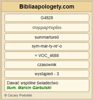 | L07 | Rz9_1 | Prawdę G225 mówię G3004 w G1722 Chrystusie G5547 , nie G3756 kłamię G5574 , potwierdza G4828 mi G3427 to moje G3450 sumienie G4893 w G1722 Duchu G4151 Świętym G40 . |