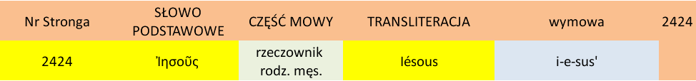 5 - numeracja Stronga. Każde słowo greckie w tekście Nowego Testamentu opatrzone jest numerem. Po kliknięciu na ten numer pojawi się informacja o formie podstawowej tego słowa. Poniżej informacja o numerze Stronga nr 2424 (Jezus);