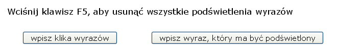 Opcja "wpisz klika wyrazów" podświetla na żółto równocześnie wiele wyrazów.