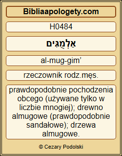 Flota H590 Hirama H2438 , która H834 dostarczyła H5375 złoto H2091 z Ofiru H211 , przywiozła H935 również H1571 drewno H6086 sandałowe H484 i wielką H3966 ilość H7230 drogocennych H3368 kamieni H68 . |