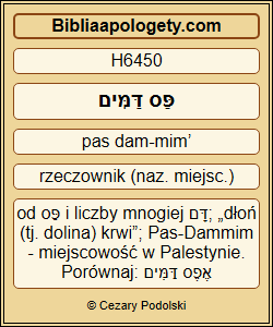 13 He was with David <01732> at Pasdammim <06450>, and there the Philistines