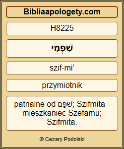 Szimei H8096 z Rama H7435 – nad winnicami H3754 , a nad dostawcami H7578 wina H3196 do składnic H214 – Zabdi H2067 z Szefam H8225 . |