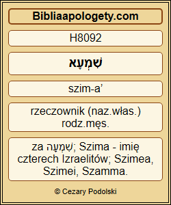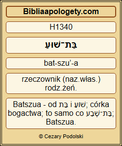 A synowie H1121 , którzy urodzili H3205 mu się w Jerozolimie H3389 : Szimea H8092 , Szobab H7727 , Natan H5416 , Salomon H8010 , czterej H702 z Batszeby H1340 , córki H1323 Ammiela H5988 . |