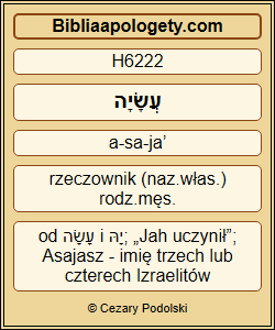 Elioenaj H454 , Jaakoba H3291 , Jeszochajasz H3439 , Asajasz H6222 , Adiel H5717 , Jesimiel H3450 , Benajasz H1141 , |