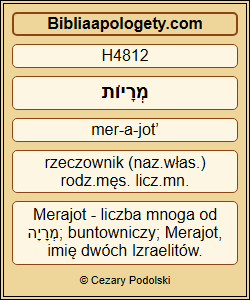 Merajot H4812 był ojcem H3205 Amariasza H568 , a Amariasz H568 – Achituba H285 . |