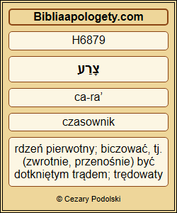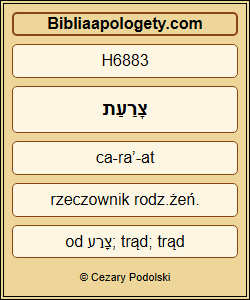 A trąd H6883 Naamana H5283 przylgnie H1692 do ciebie i do twojego potomstwa H2233 na zawsze H5769 . Gechazi więc oddalił się H3318 od niego biały od trądu H6879 jak śnieg H7950 . |
