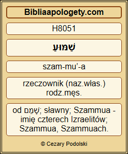 Oto H1271 imiona H1272 tych, H1273 którzy H1274 urodzili H1275 się H1276 w H1277 Jerozolimie: H1278 Szammua, H1279 Szobab, H1280 Natan, H1281 Salomon, H1282 |