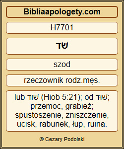 | L01 | Am5_9 | On na mocnego H5794 zsyła zniszczenie H7701 i sprowadza H935 zniszczenie H7701 na twierdzę H4013 . |