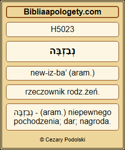 Jeżeli H2006 zaś H1992 wyjawicie H2324 mi H5922 sen H2493 i H6591 jego znaczenie H6591 , otrzymacie H6902 ode mnie H4481 dary H4978 i H5023 nagrody H5023 oraz H7690 wielkie H3367 zaszczyty H3367 . Toteż H3861 powiedzcie H2324 mi H5922 sen H2493 i H6591 jego znaczenie H6591 ! |