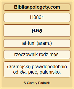 Mężom H1401 zaś H116 najsilniejszym H2429 spośród H4481 swego H4430 wojska H2429 polecił H560 związać H3729 Szadraka H7715 , Meszaka H4336 i H5665 Abed-Nega H5665 i H7412 wrzucić H7412 ich H607 do H1459 rozpalonego H3345 pieca H861 . |