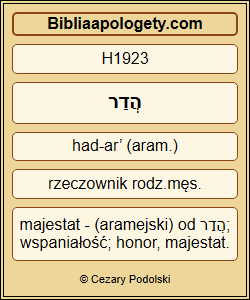 W tej H1932 samej H2166 chwili H8160 powrócił H8421 mi H5922 rozum H4486 i H1923 na H5922 chwałę H3367 Jego H1768 panowania H4437 powrócił H8421 mi H5922 majestat H1923 i H2122 blask H2122 . Doradcy H1907 moi H1768 i H7261 możnowładcy H7261 odszukali H1156 mnie H5922 i H8627 przywrócili H8627 mi H5922 władzę H4437 królewską H4437 , i H3493 dano H3052 mi jeszcze H3255 większy H7238 zakres H7238 władzy H4437 . |