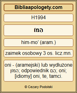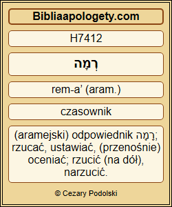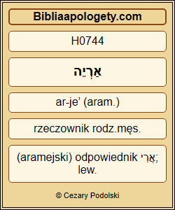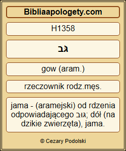 Na H5922 rozkaz H560 króla H4430 przyprowadzono H858 mężów H1400 , którzy H1768 oskarżyli H399 Daniela H1841 , i H7412 wrzucono H7412 do H1459 jaskini H1358 lwów H744 ich H1994 samych H581 , ich H1994 dzieci H1123 i H5389 żony H5389 . Nim H5705 jeszcze H1768 wpadli H4291 na H5922 dno H773 jaskini H1358 , pochwyciły H7981 ich H1994 lwy H744 i H1855 zmiażdżyły H1855 ich H1994 kości H1635 . |