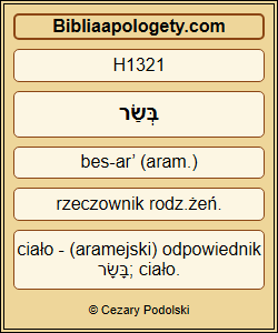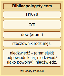 A H718 oto H718 druga H8578 bestia H2423 , zupełnie H8133 inna H8133 , podobna H1821 do H1768 niedźwiedzia H1678 , z H5921 jednej H2298 strony H7859 podparta H6966 , a H8532 trzy H8532 żebra H5967 miała H1934 w H5922 paszczy H6433 między H997 zębami H8128 . Mówiono H560 do H5922 niej H1994 : Podnieś H6966 się! Pożeraj H399 wiele H7229 mięsa H1321 ! |