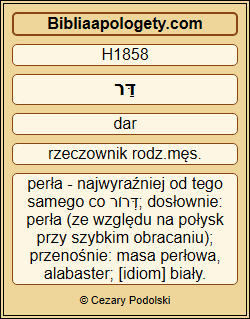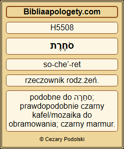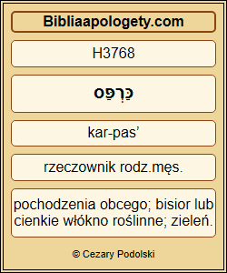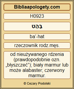 Białe H2353 tkaniny H3768 lniane H948 i H8504 fioletowa H8504 purpura H8504 były H1961 przymocowane H270 sznurami H2256 z H4480 bisioru H948 i H713 purpury H713 czerwonej H713 do H5921 srebrnych H3701 pierścieni H1550 na H5921 kolumnach H5982 z H4480 białego H8336 marmuru. H8336 Sofy H4296 złote H2091 i H3701 srebrne H3701 stały H5975 na H5921 posadzce H7531 z H4480 kamieni H68 koloru H4758 szmaragdu, H5508 białego H8336 marmuru, H8336 masy H1858 perłowej H1858 i H853 mozaice. H7531 |