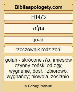 Wynieś H3318 swoje H4480 tobołki H3627 , jak tobołki H3627 zesłańca H1473 , za dnia H3119 , na ich oczach H5869 , i wyjdź H3318 wieczorem H6153 – na ich oczach H5869 – tak jak H834 wychodzą H3318 zesłańcy H1473 . |