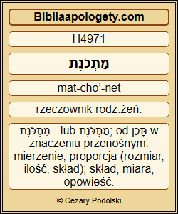 ustalona H2706 ilość H4971 oliwy H8081 wynosi H1961 dziesiątą H6224 część H6224 bat H1324 z H4480 kor H3734 , a H6235 dziesięć H6235 bat H1324 stanowi H1961 kor H3734 – |