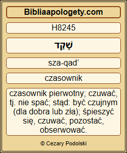 Strzeżcie H8104 tego H2063 pilnie, H8245 aż H5704 odważycie H8254 to H853 przed H6440 przywódcami H8269 kapłanów H3548 i H853 lewitów H3881 oraz H853 przed H6440 przywódcami H8269 rodów H1 izraelskich H3478 w H1004 Jerozolimie, H3389 w H1004 komnatach H3957 domu H1004 Pańskiego. H3068 |