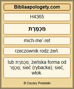 Przeto H5921 H3651 ofiarę H2076 składa H6213 swojej H1992 sieci H2764 , pali H6999 kadzidło H6999 niewodowi H4365 swemu H1992 , bo H3588 przez nie H1992 zdobył H8085 sobie H1992 łup H2506 bogaty H8082 , a pożywienie H3978 jego H1992 stało się H1961 obfite H1277 . |