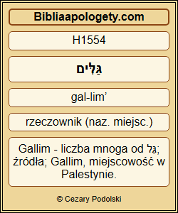 <01530> Gallim <01554>: cause it to be heard <07181> (08685) unto Laish <03919>, O