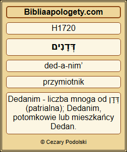 Wyrok H4853 na Arabię H6152 . W zaroślach H3293 pustyni H6152 nocujecie H3885 , karawany H736 Dedanitów H1720 . |