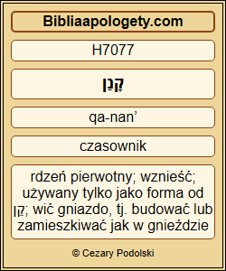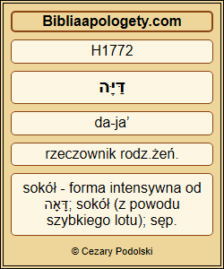 Tam H8033 się wąż H7091 gnieździć będzie H7077 i znosić H4422 jaja H1001 , wysiadywać H1234 młode H6089 i zgarniać H1716 je pod swój cień H6738 . Tam H8033 i sępy H1772 się zlecą H6908 , nie będą H3808 patrzeć H7200 szukając H1875 jeden H259 drugiego H7468 . |