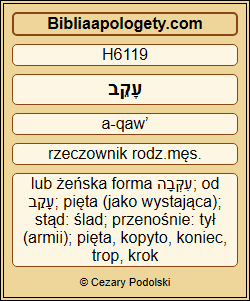 | L16 | Job18_9 | 9 The gin <06341> shall take <0270> (08799) him by the heel <06119>, and the robber <06782> shall prevail <02388> (08686) against him. | |||||