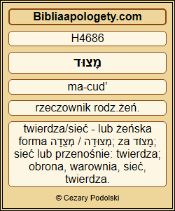 Wiedzcie H3045 , że H3588 Bóg H433 mnie H589 pognębił H5791 , swe H1931 sieci H4685 rozstawił H5362 wokoło H5439 . |