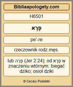 niby H3644 osły H6501 na H5921 pustkowiu H4057 . Wychodzą H3318 , by H6467 szukać H7836 pracy H6467 , żywności H2964 szukają H7836 do H5704 wieczora H6153 , pożywienia H3899 dla H5288 dzieci H5288 . |