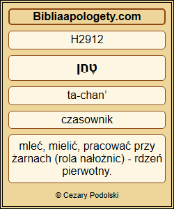 | L01 | Job31_10 | niech moja żona H802 miele H2912 obcemu H312 , niech inni H312 się do niej zbliżają H3766 ! |