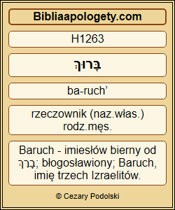 Jeremiasz H3414 wziął H3947 inny H312 zwój H4039 , dał H5414 go Baruchowi H1263 , synowi H1121 Neriasza H5374 , który spisał H3789 w nim H5921 pod dyktando H6310 Jeremiasza H3414 wszystkie H3605 słowa H1697 księgi H5612 , jaką H834 spalił H8313 Jojakim H3079 , król H4428 judzki H3063 . Nadto H5750 zostały dodane H3254 liczne H7227 dalsze H312 słowa H1697 podobne H1992 do tamtych H1992 . |
