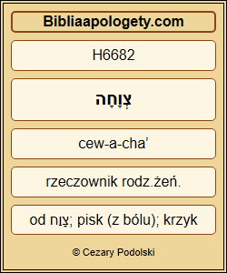 Usłyszały H8085 narody H1471 o twej hańbie H7036 , ziemia H776 się napełniła H4390 twoim bolesnym wołaniem H6682 . Jeden wojownik H1368 potknął się H3782 o drugiego H7453 , obaj razem upadli H5307 . |